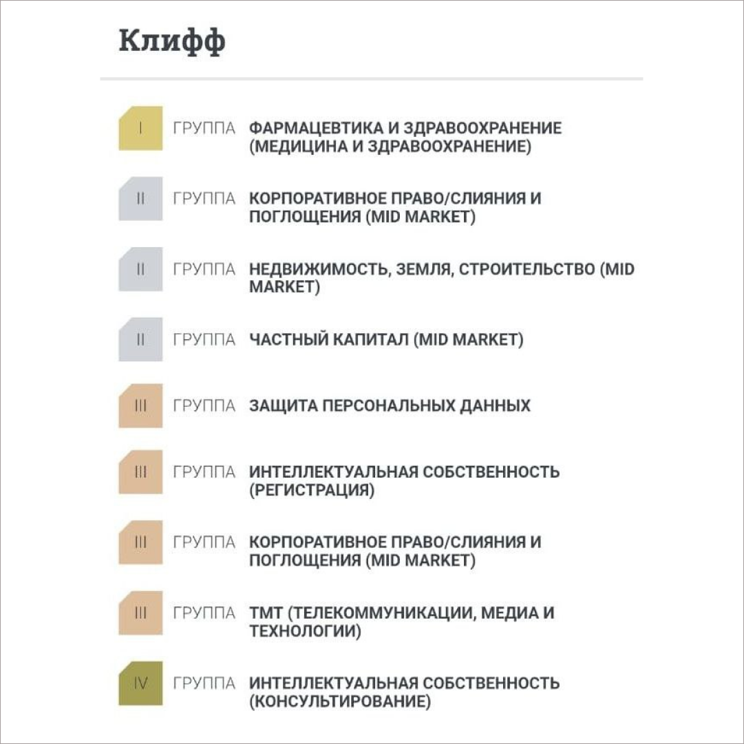 2 место в категории Корпоративное право/Слияния и поглощения ( консультирование)